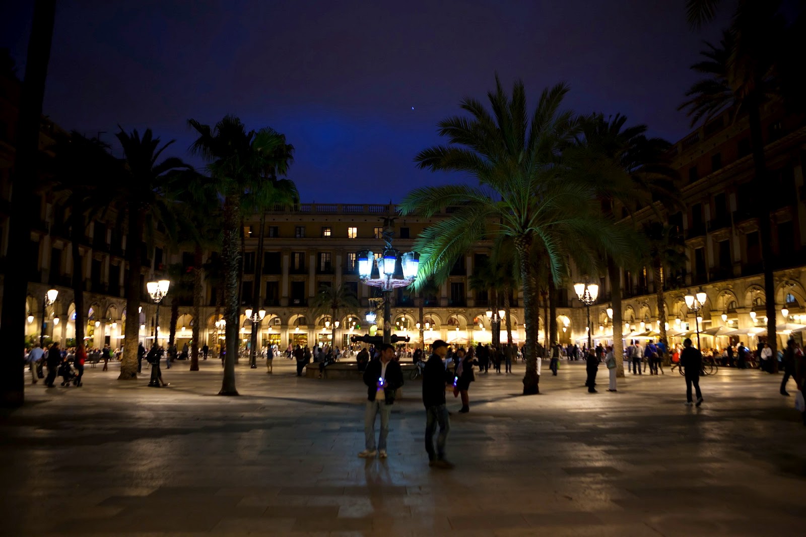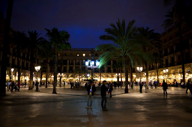 в девять вечера, выйдя из аэропорта с левой стороны, несколько остановок автобусов, которые за сорок минут довез нас до площади Каталонии, а там и до съемной квартиры. Десять минут хода по центральной улице Ла Рамбла , которая никогда не засыпает. Мимо площади Реаль с кучей вкусностей